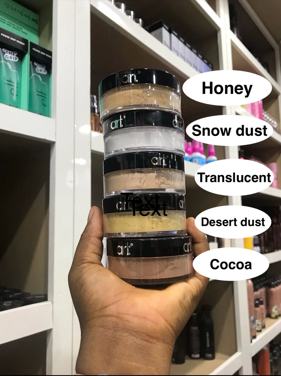 Art Loose Face Powder is a soft, finely milled powder that sets makeup for a long-lasting, flawless look. It helps control excess oil, blur imperfections, and leave the skin with a smooth, matte finish while keeping makeup in place all day.