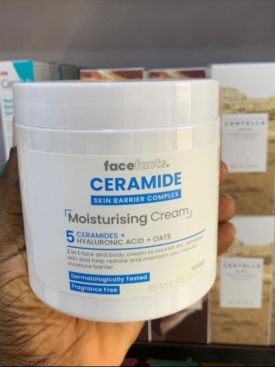 Face Facts Ceramide Moisturising Cream is a lightweight hydrating moisturizer designed to repair and strengthen the skin moisture barrier while providing long lasting hydration. It is formulated with a skin barrier complex of 5 Ceramides, Hyaluronic Acid, Vitamin E, and soothing Oats to nourish dry, sensitive, or damaged skin.