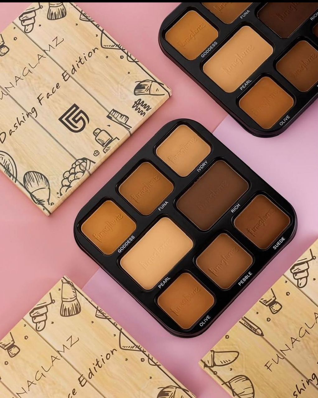 The Funaglamz 13-in-1 Palette is a versatile makeup kit that combines thirteen essential products in one stylish case. With its wide range of shades and finishes, it is perfect for creating everyday natural looks as well as bold and glamorous styles.