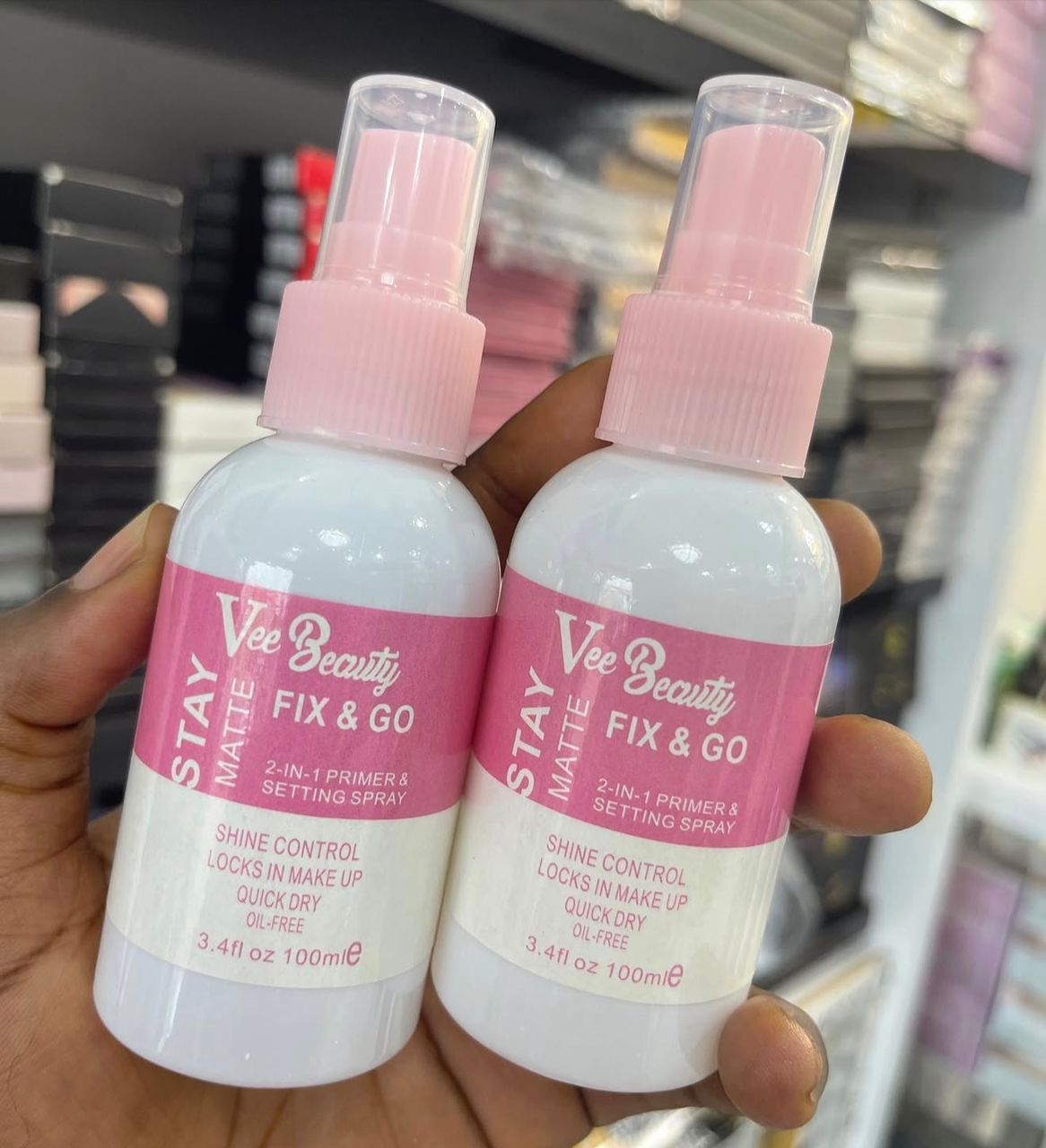 The VEE Beauty Fix & Go Setting Spray is a lightweight mist designed to keep makeup in place while refreshing the skin. Its formula helps prevent fading, creasing, and smudging, giving you a smooth, lasting finish. Perfect for everyday use or touch-ups on the move, it ensures makeup stays fresh without feeling heavy.